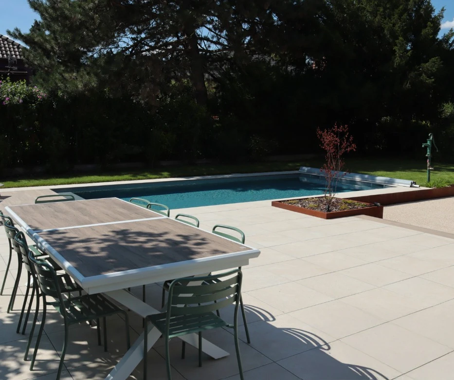 Notre portfolio inclut des jardins contemporains à Strasbourg, des espaces zen avec bassins à Obernai, des terrasses en bois avec pergolas à Lingolsheim, et des aménagements complets avec piscines à Haguenau. Chaque projet témoigne de notre capacité à transformer tout espace extérieur en respectant le style architectural existant et les souhaits spécifiques du client.